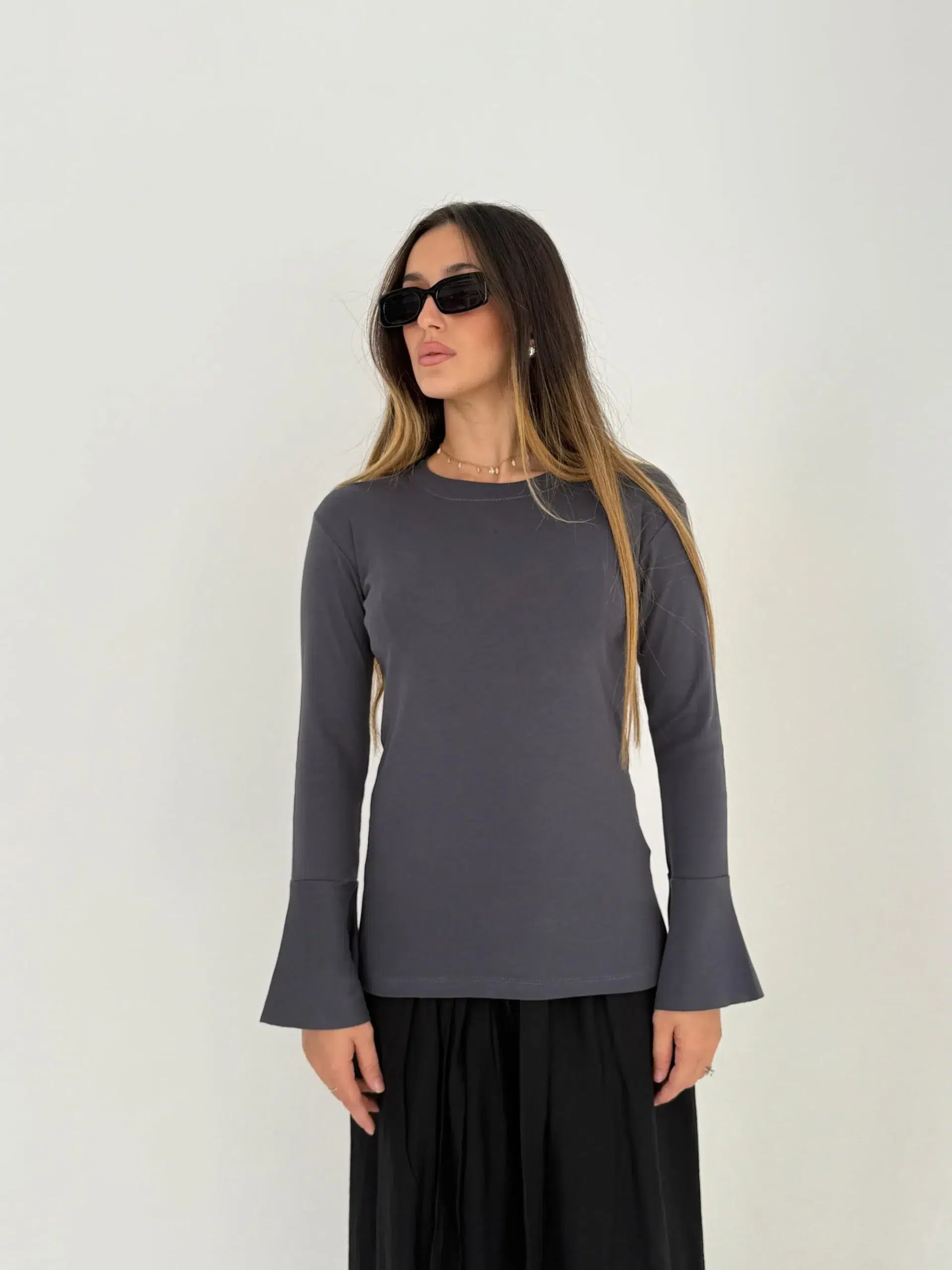 חולצת בייסיק שרוול פעמון.