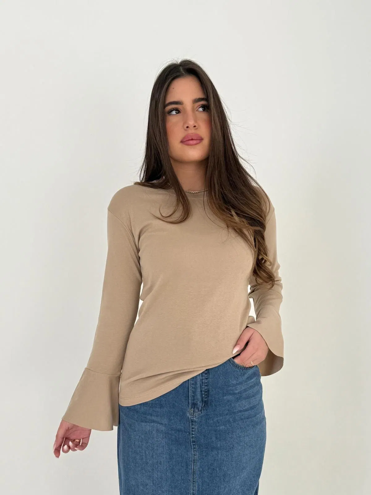 חולצת בייסיק שרוול פעמון.