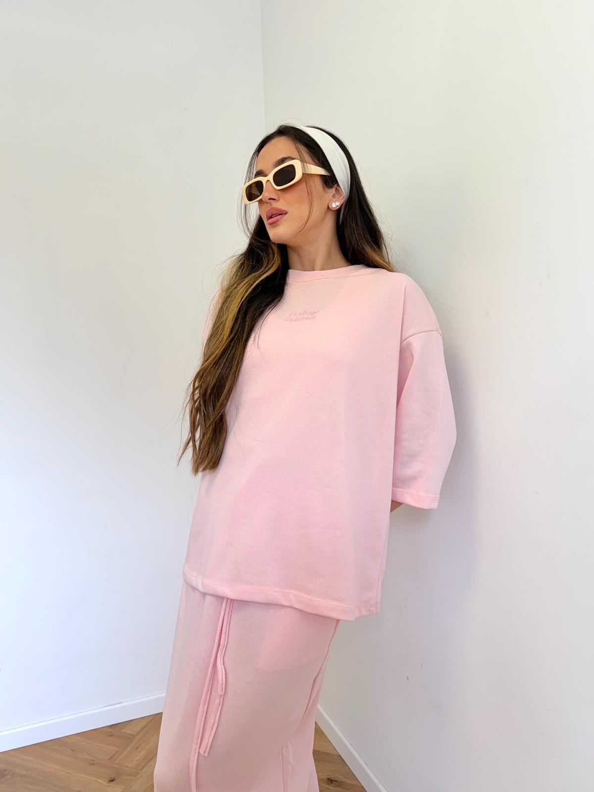 חליפת 2 חלקים, חולצת בייסיק שרוול מרפק עם רקמה, חצאית ארוכה. מידת הבגד על הדוגמנית 1.