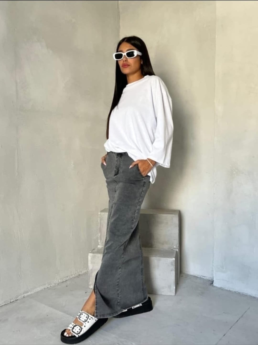 חצאית ג׳ינס מקסי עם שסע מקדימה , כיס קופיקו.